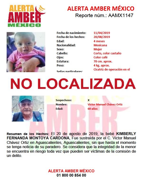 Si necesitas la activación de la Alerta Amber para un caso que conozcas tienes que ponerte en contacto utilizando el numero de teléfono: 01 800 00 854 00 con cobertura nacional las 24 horas de los 365 días del año.