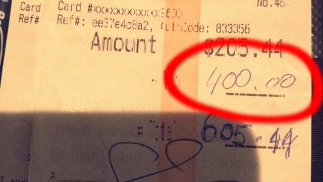 Al recoger el dinero del pago de la cuenta, la estudiante quedó atónita cuando vio la cantidad de propina que los tórtolos le habían dejado, 400$ fue el regalo que recibió por sus buenas atenciones.