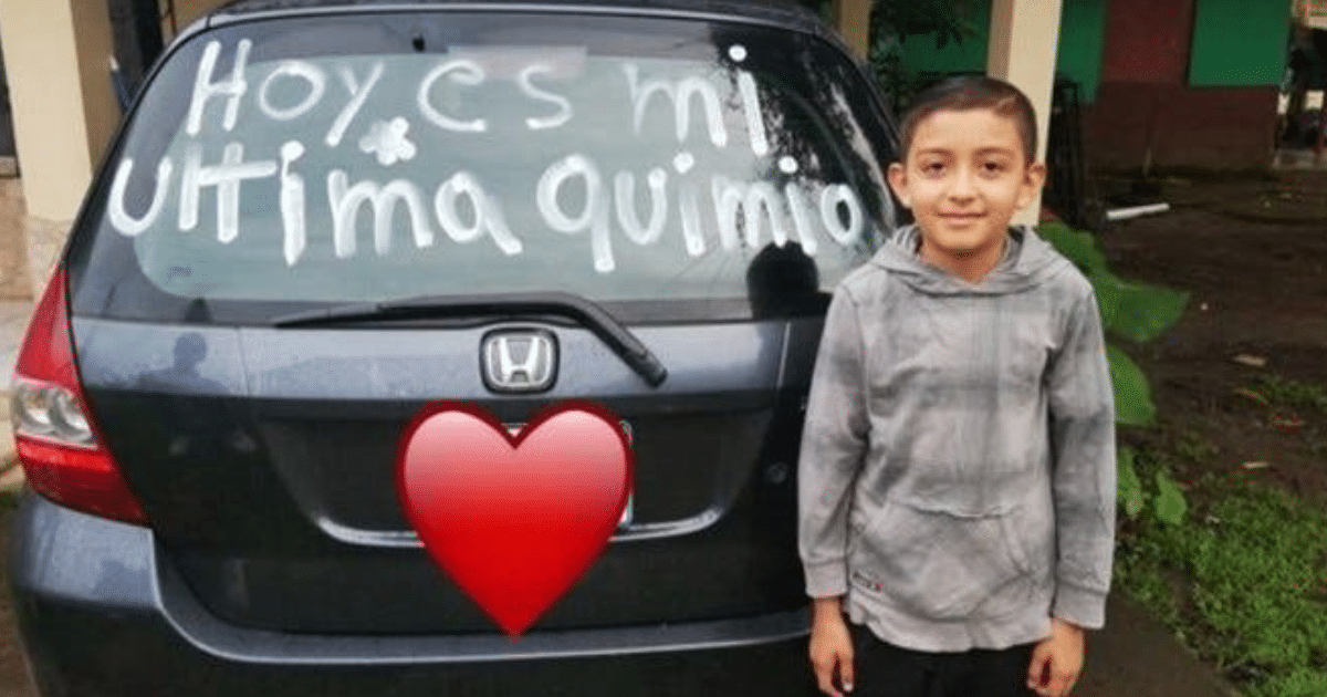Por fortuna, el 20 de mayo del año en curso, logró vencer de una vez por todas esa terrible afección. Ante esto, el pequeño y su familia decidieron compartir la inmensa felicidad que les causa ganar la batalla, lo hicieron por medio de un escrito que colocaron en la ventana trasera del carro de su padrastro.