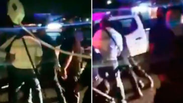 En el video se puede ver cómo los policías tratan de dialogar con la joven y pedirle que abandone el lugar, la joven muy violenta se acerca a ofender a uno de los agentes y este le propina un golpe con fuerza en la cara.