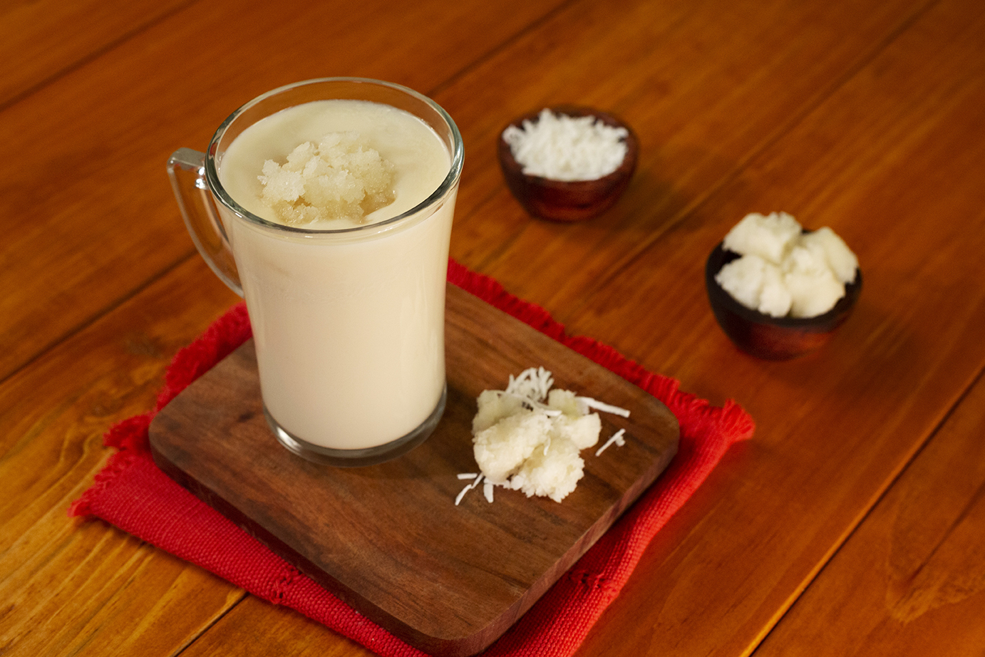 Hierve la leche de coco, crema de coco, vainilla, agua y leche condensada, luego añades el coco rallado y canela en polvo. Retira del fuego y agrega canela en polvo al gusto