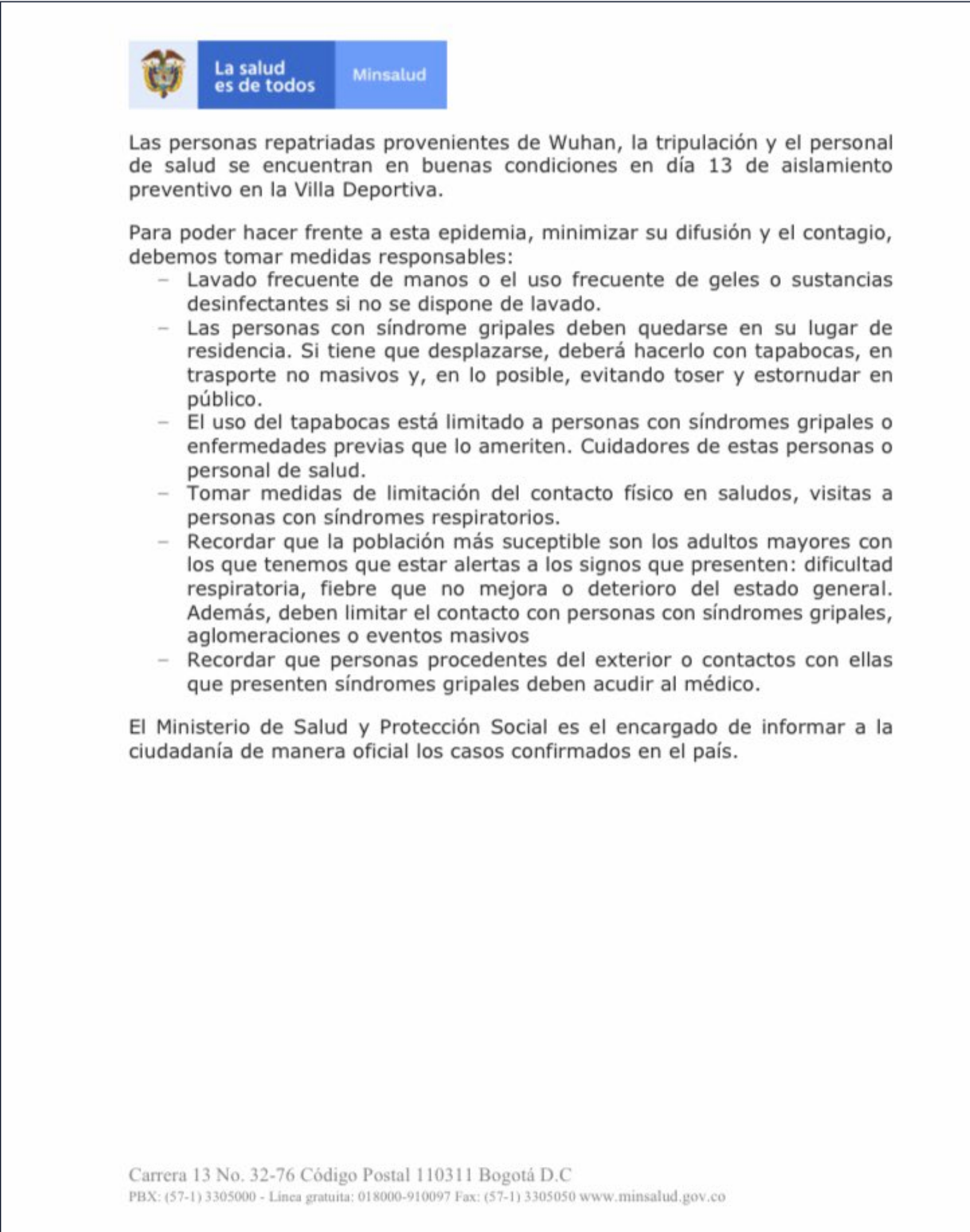 — MinSaludCol (@MinSaludCol) March 11, 2020