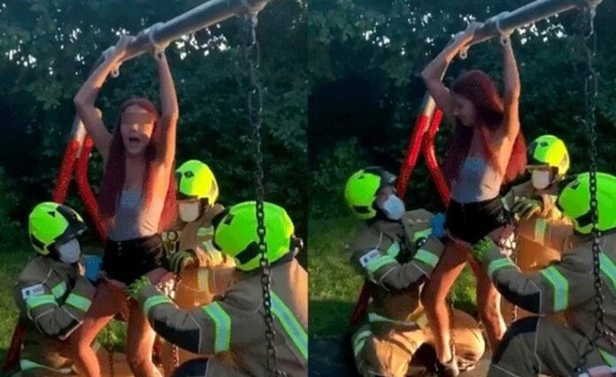 ¡Tienes que verlo! Joven quedó atrapada en columpio de bebé por intentar grabar un video para Tiktok