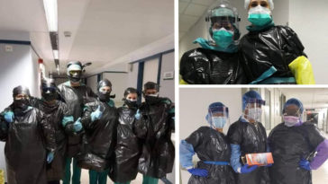 in Curiosidades Héroes sin capa: Médicos y enfermeras usan bolsas de basura para protegerse del coronavirus