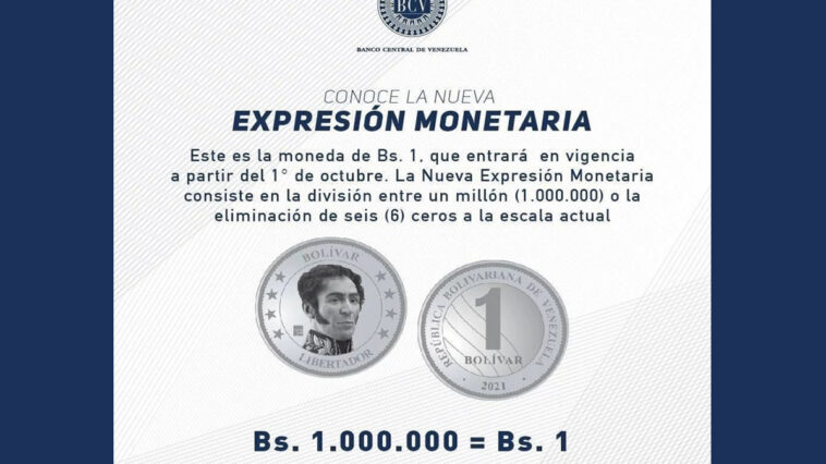 El Banco Central de Venezuela anunció una nueva reconversión monetaria a partir del 1ero de Octubre