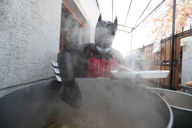 Revestido en su brillante traje de murciélago, que además acompaña con un tapabocas, el hombre que prefiere permanecer en el anonimato, sale repartir todas las noches decenas de platos de comida, a las personas que están en indigencia y que se acerquen a su vehículo.