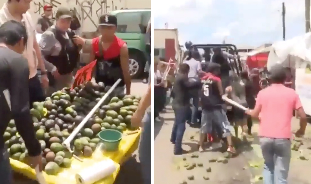 En las redes sociales comenzó a circular el video donde se puede ver a los vendedores en el momento que le iban a decomisar sus productos, ante la negativa de poder dialogar, decidieron emplear la fuerza haciendo volar aguacates por todos lados contra las autoridades.